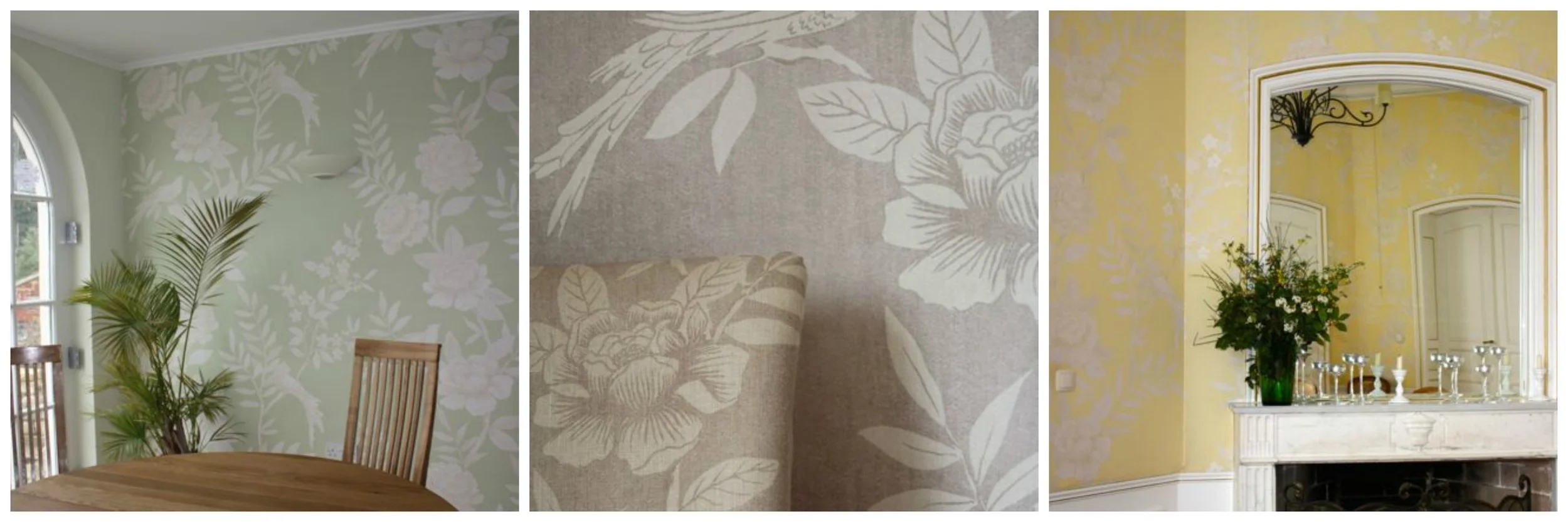 A beautiful soft, calm, classic floral trail inspired by 19th century chinoiserie prints. Available in 2 sizes and a range of gentle faded colours this design can also be custom coloured to suit your scheme.