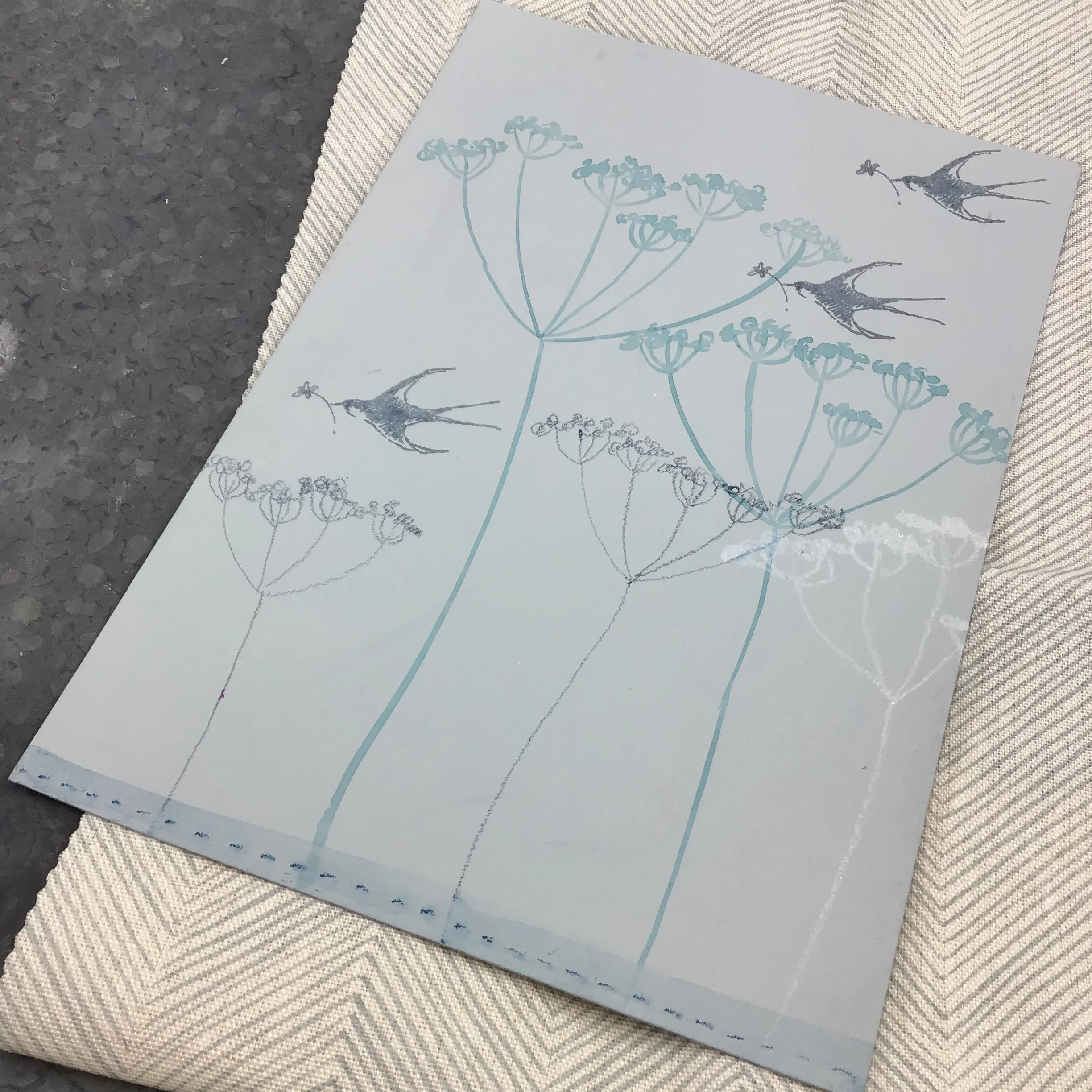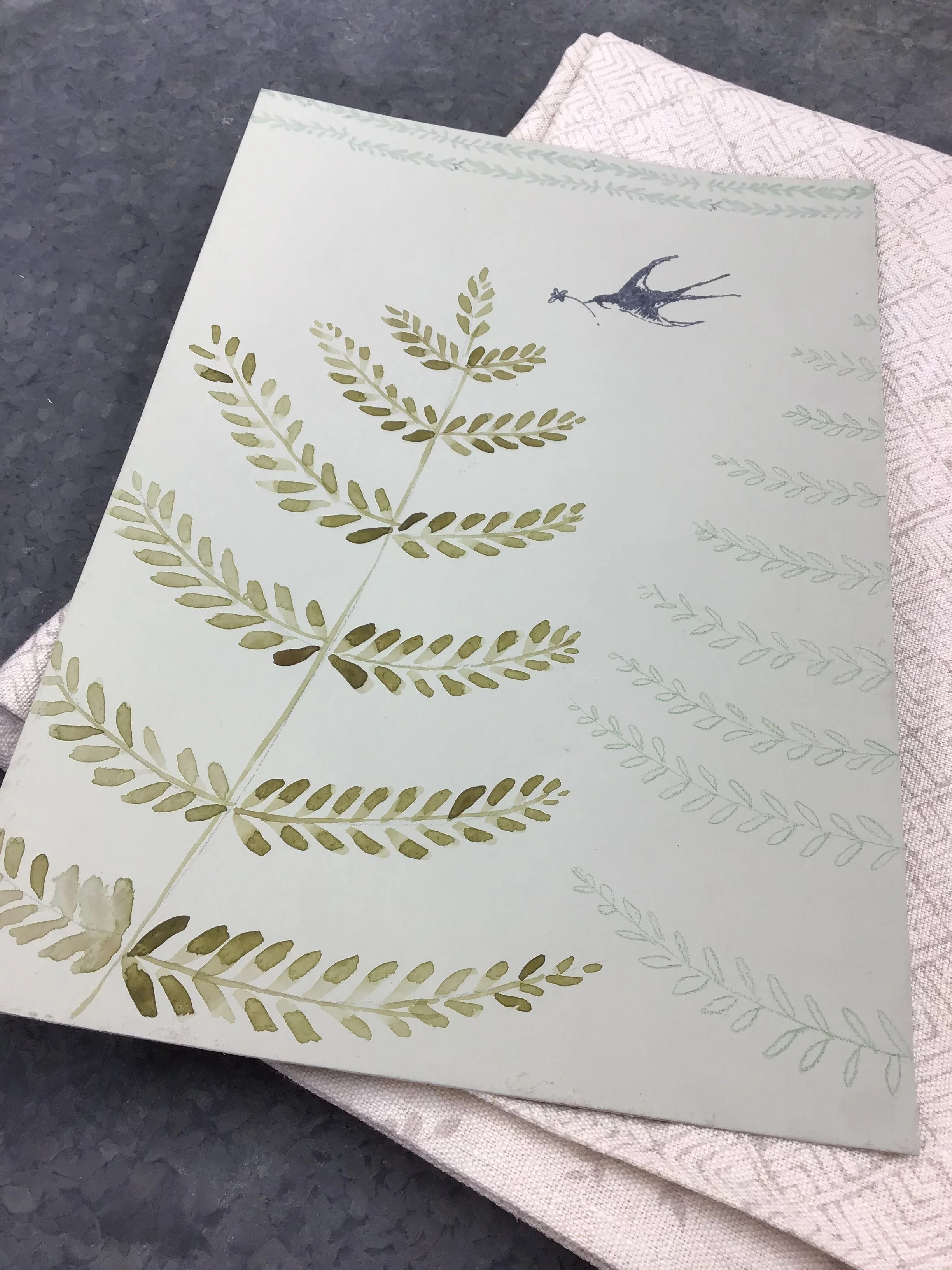 handpainted by Sarah these A4 studies for Wiveton fabric and ferns are painted in soft chalky tones.