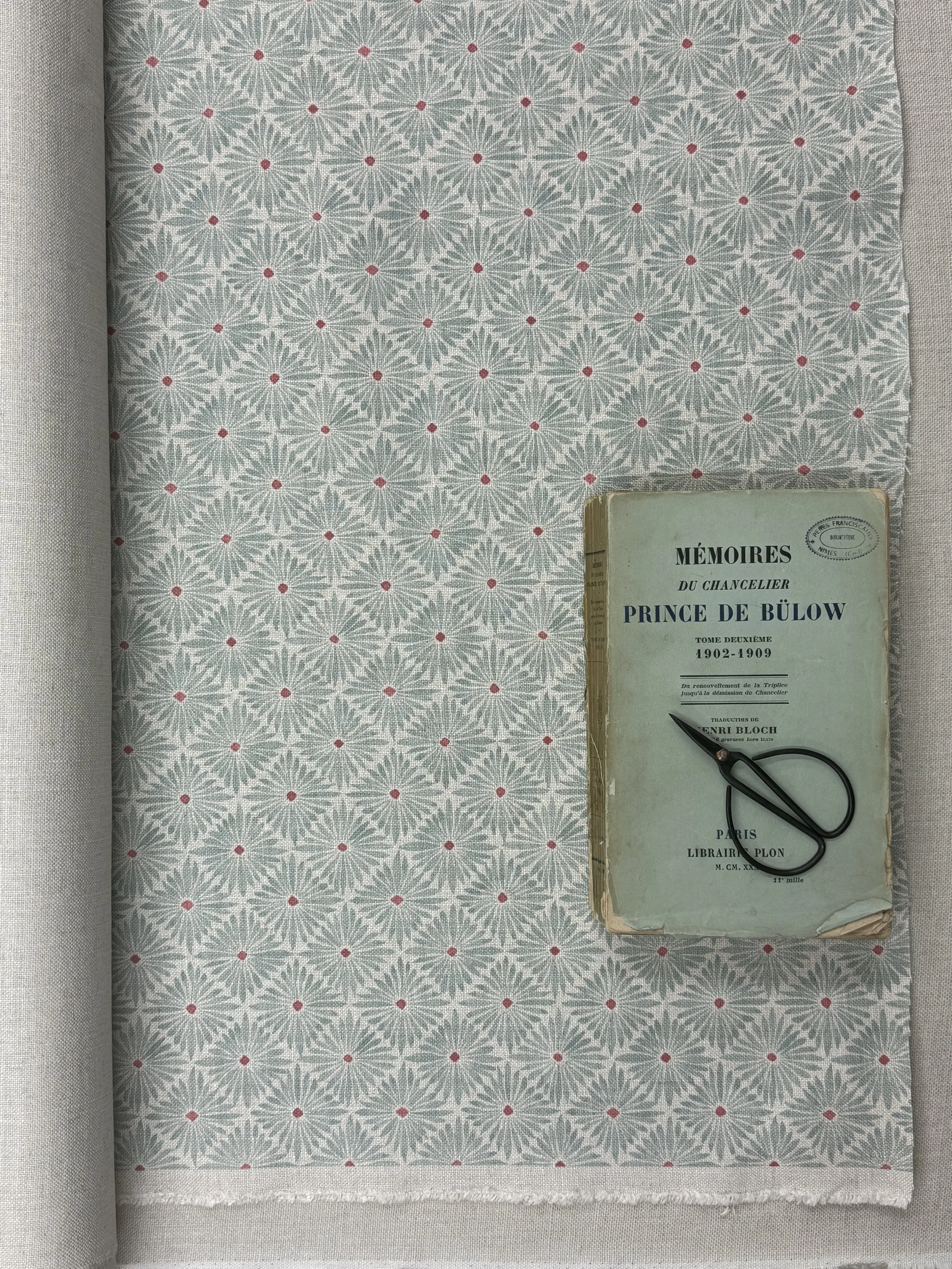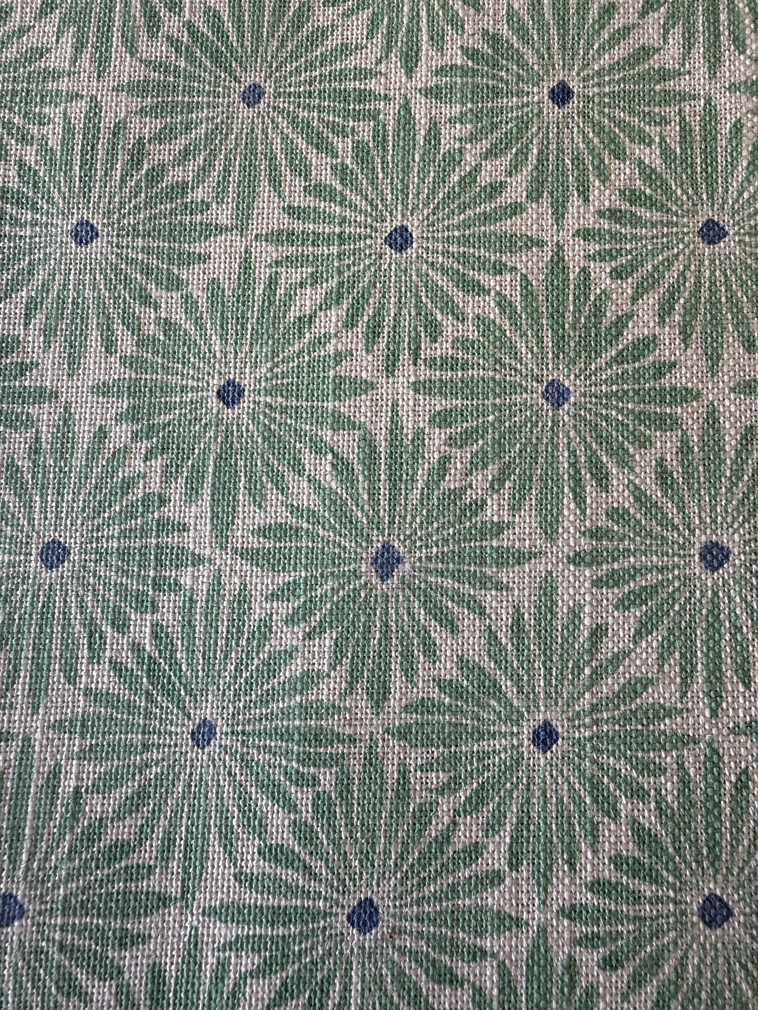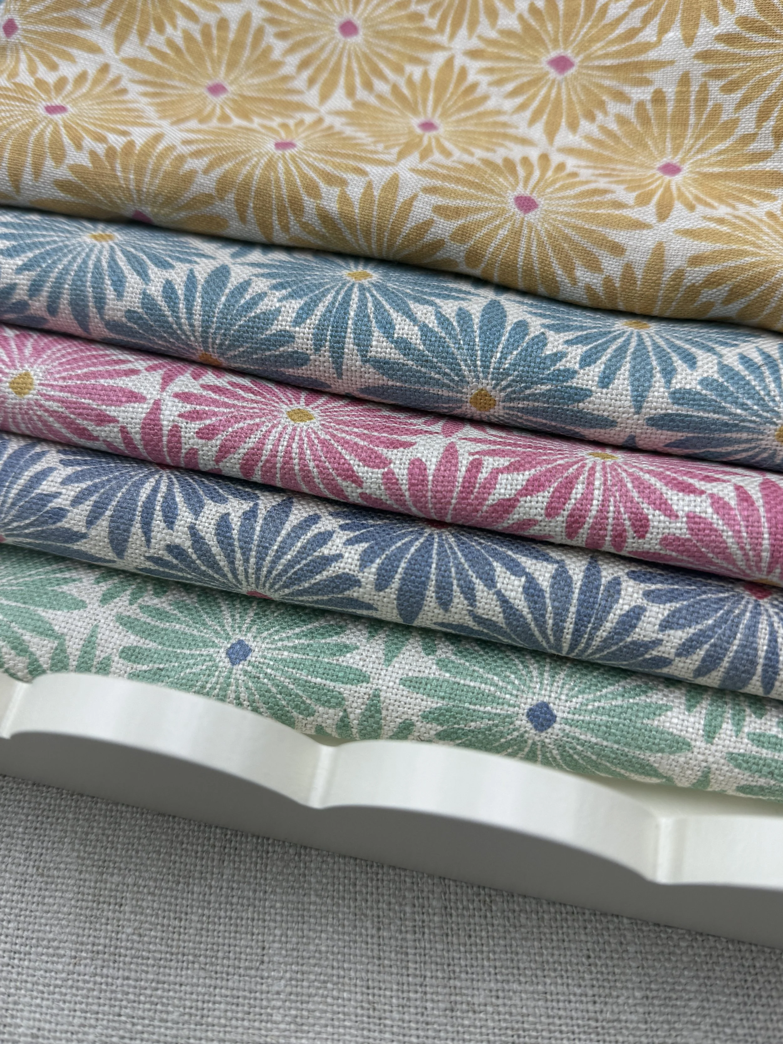 An easy to use hand drawn geometric fabric, inspired by Portuguese tiles Porto is a multidirectional design which works brilliantly for headboards and roman blinds and because it has a little bit of viscose in the weave it makes up in to beautiful soft drapey curtains.