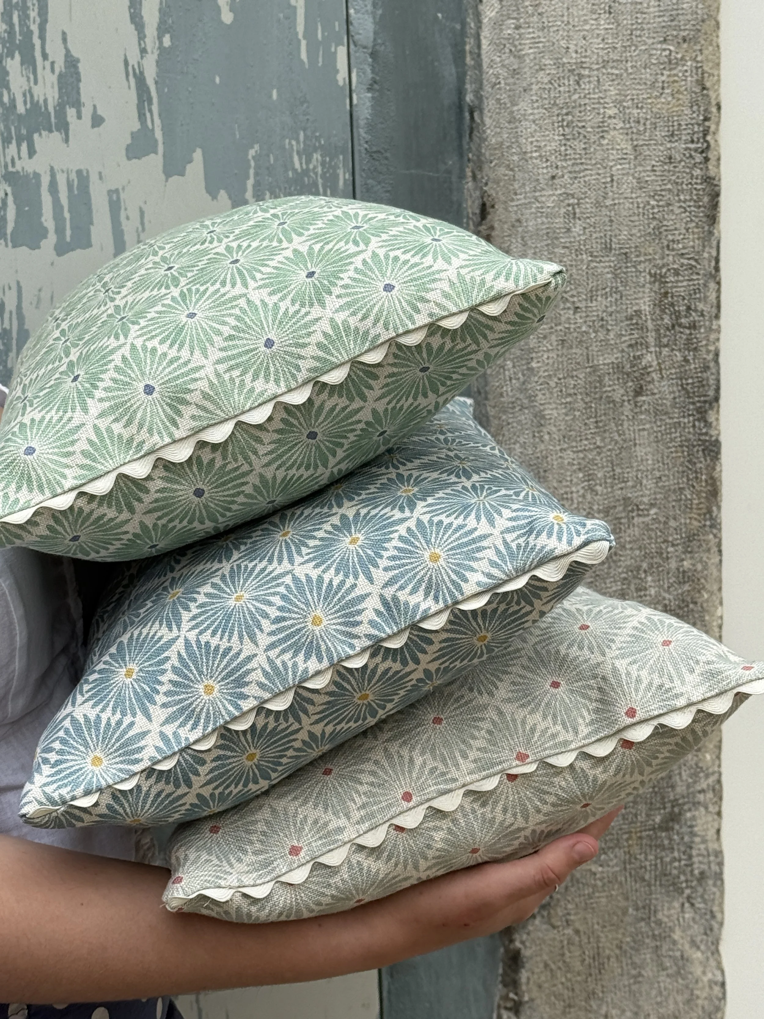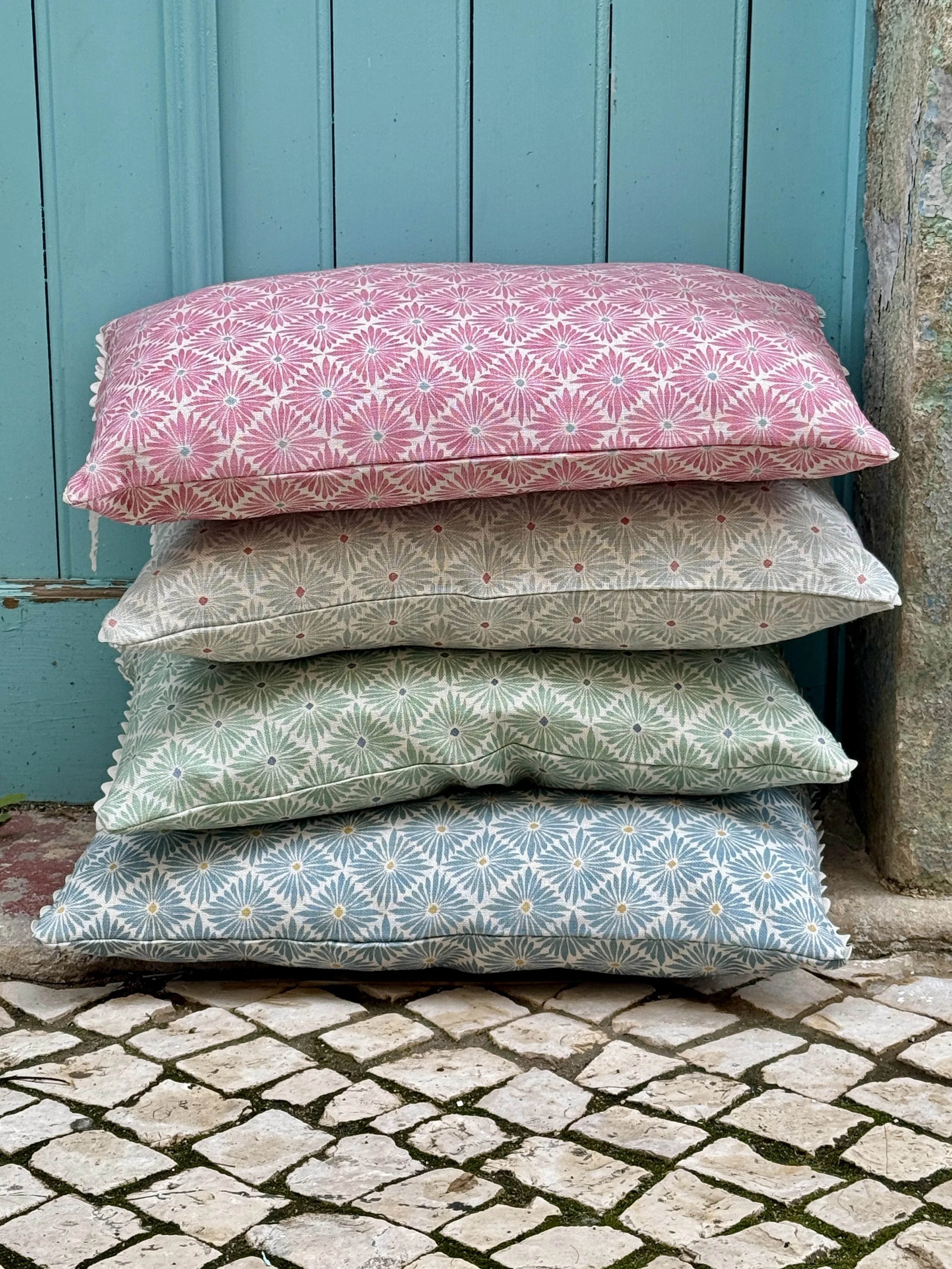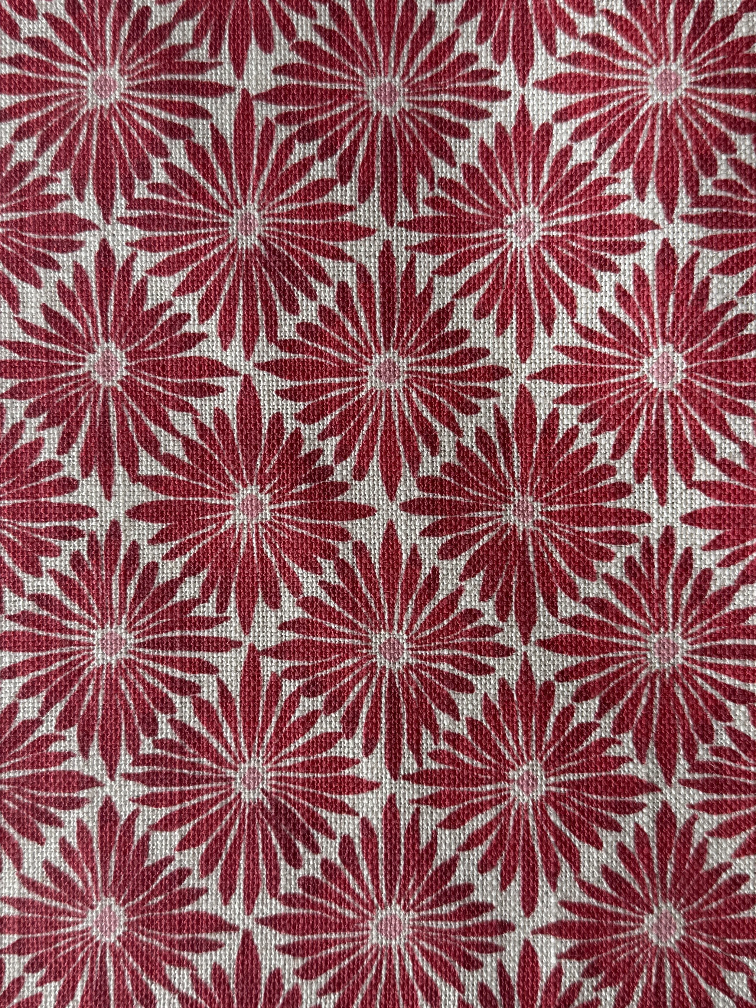 An easy to use hand drawn geometric fabric, inspired by Portuguese tiles Porto is a multidirectional design which works brilliantly for headboards and roman blinds and because it has a little bit of viscose in the weave it makes up in to beautiful soft drapey curtains.