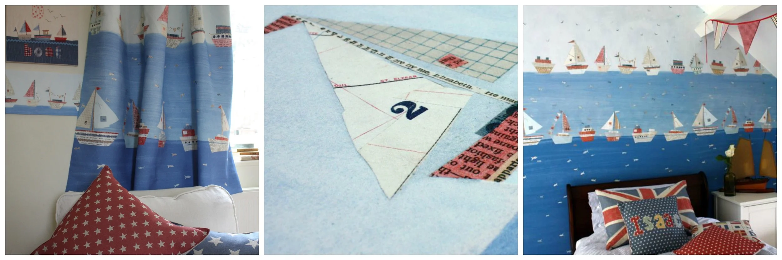an exciting take on wallpaper, hang a single panel, or fill a whole wall for a striking mural effect. Our lovely paper boats design is also available as curtains and blinds.